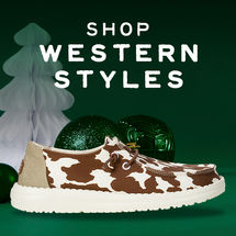 A collection of promotional digital marketing for brand site landing page, nav tiles, crm, and advertisements for various heydude deals and sales.